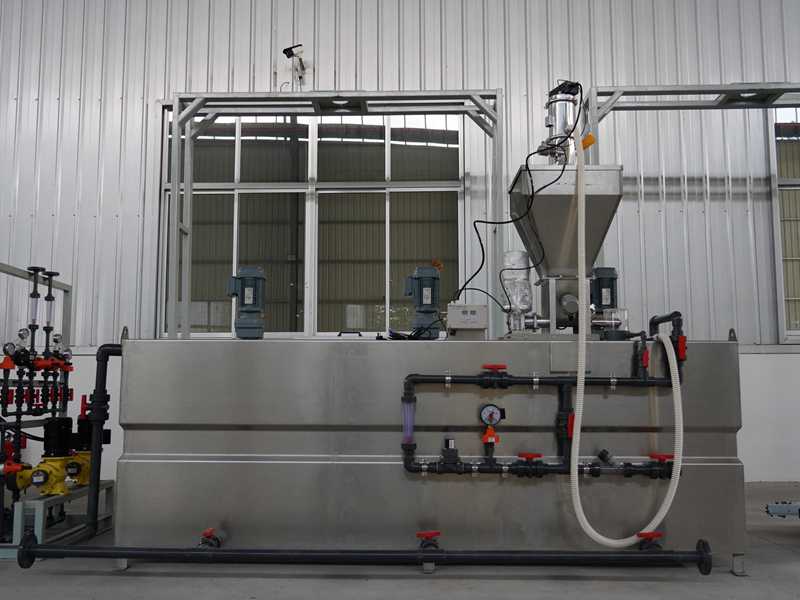 自動化程度高,采用PLC和液位計控制系統(tǒng),操作簡單、方便;采用單螺旋給料器投加干粉,設(shè)備可控制,投料均勻、分散、精準(zhǔn);采用三槽溢流式溶液操作系統(tǒng),使設(shè)備結(jié)構(gòu)簡單、體積小、安裝方便;在規(guī)定的生產(chǎn)量及連續(xù)投液條件下,所配制溶液的熟化時間在1小時左右,其配制的濃度為0.1%--0.3%;系統(tǒng)穩(wěn)定可靠,有故障時相關(guān)設(shè)備會自動按要求停止,同時發(fā)出聲光警報。