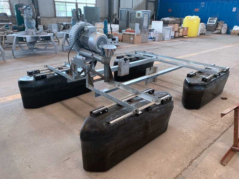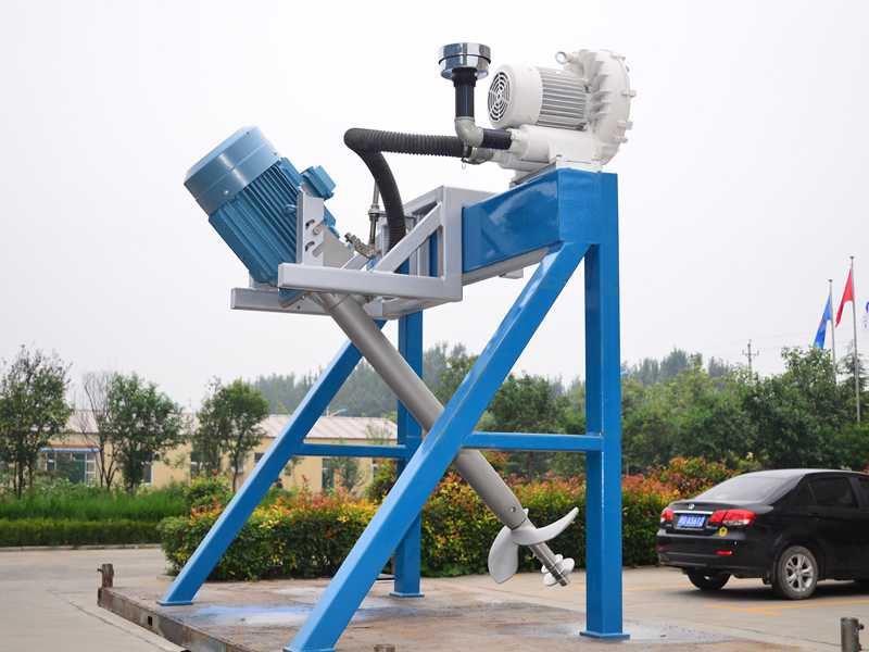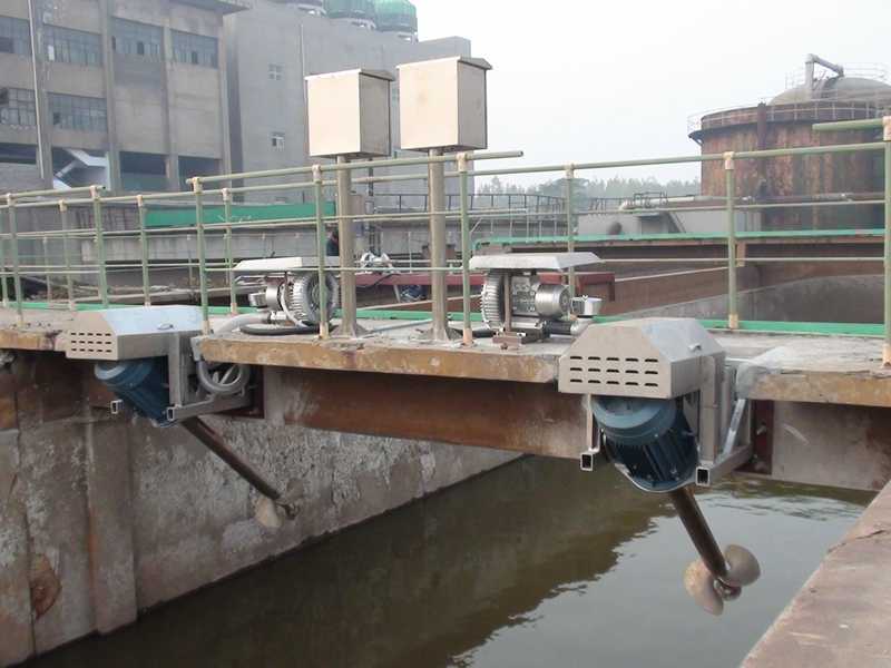 電動機帶動螺旋槳旋轉(zhuǎn),高壓旋渦氣泵使得空氣通過進氣管進入空氣進孔達到螺旋槳,使得其水混合造成微小氣泡,汽水混合物水平、豎直方向離開螺旋槳,達到有效混合和向水中曝氣。
